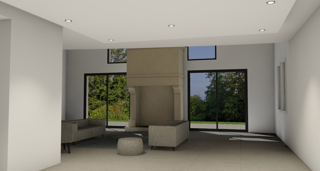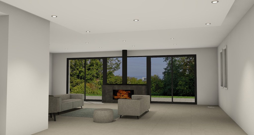 Le projet vise à principalement à retrouver la vue sur mer. Celle-ci ayant été occultée par une cheminée massive. Le nouvel aménagement propose une vue panoramique en minimisant l’impact du foyer sur la façade.